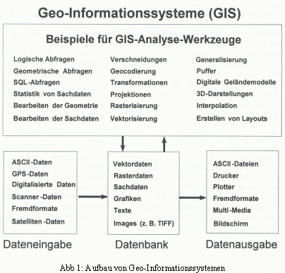 Nun, die wissenschaftlichen Definitionen des Begriffs sind überwiegend sehr allgemein gehalten und beschränken sich in der Regel auf die Forderung nach der Möglichkeit zur Erfassung, Verwaltung, Analyse und Ausgabe raumbezogener Daten.